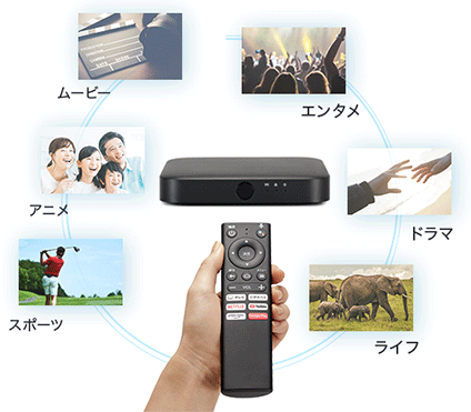 auひかりでご利用いただける、ムービー・アニメ・スポーツ・エンタメ・ドラマ・ライフなど、6ジャンルに分けた全46chの専門チャンネルをラインアップしたテレビサービスです。セットトップボックス(550円/月)をレンタルし、テレビとホームゲートウェイにつなぐだけでご利用いただけます。