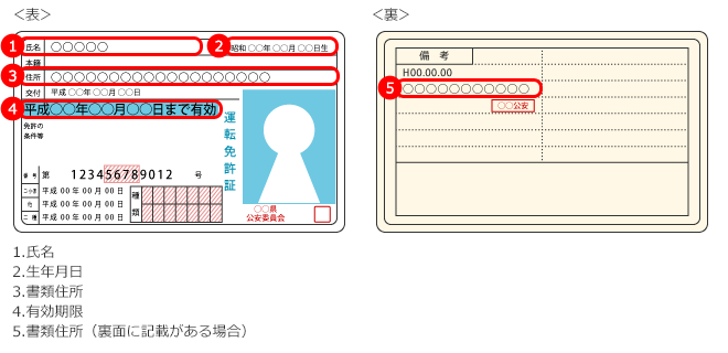 各書類にて鮮明な表示が必要となる部分を以下に記載します。