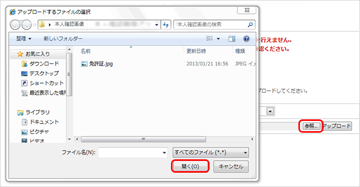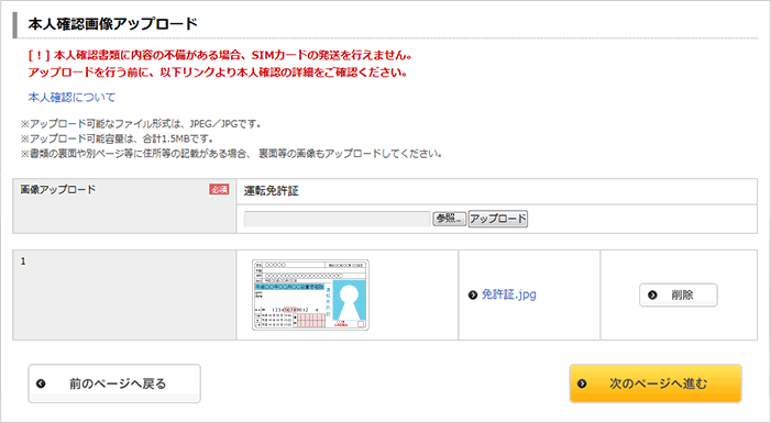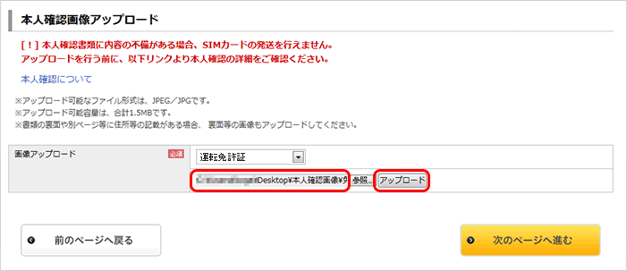 - アップロードした画像ファイル名、画像イメージに間違いがないか、確認してください。 裏面などにまだアップロードが必要な箇所がある場合には、再度"参照"をクリックし、3、4の手順に沿ってください。