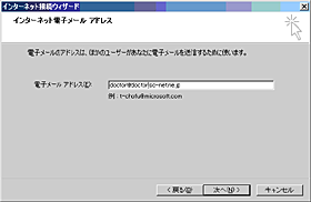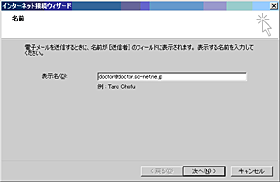 ③「インターネット接続ウィザード」が開きます。「表示名」にエイリアスアドレスを入力します。