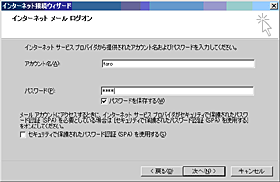 ⑥「インターネットメールログオン」画面では、基本メールボックスアドレス用の「アカウント名」と「パスワード」を入力します。