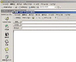 ①Outlook2002を起動し、メールの新規作成をクリックし、メールの新規作成画面を開きます。