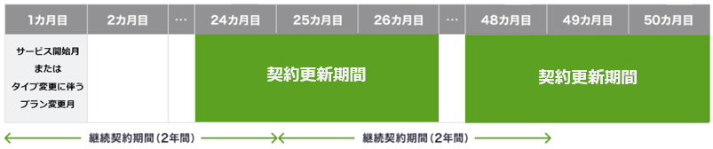 契約更新期間にタイプ変更に伴って料金プランの変更のお申し込みをされた場合は、契約解除料はかかりません。