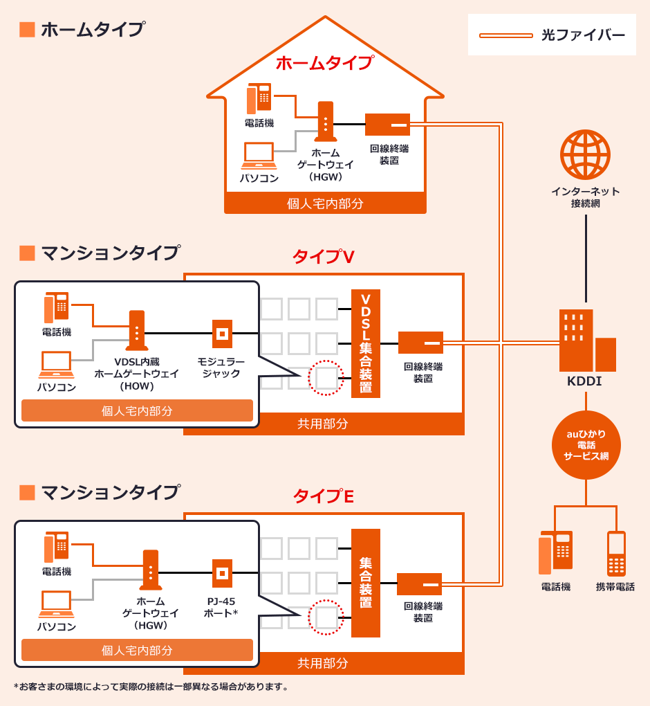 なお、NTT加入電話以外の他社電話サービスを利用中の場合は、インターネット開通工事と同日に工事が行われる場合もございます。その場合、工事日程はKDDIよりご連絡いたします。