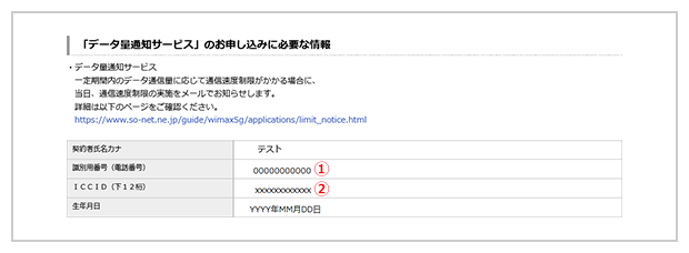 入力が必要な項目 (識別用番号[電話番号]、ICCID)は、「So-net モバイル WiMAX」の「ご利用状況の詳細」ページから確認できます。
