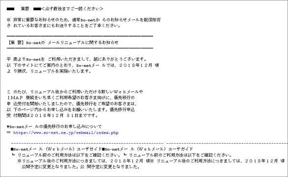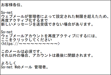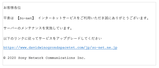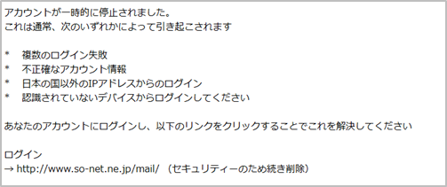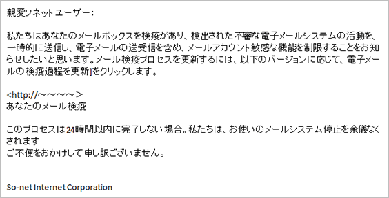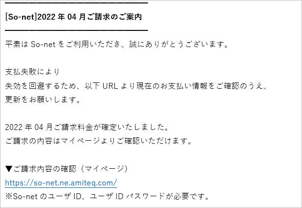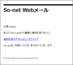 本ページ内に掲載するような不審なメールはSo-netとは一切関係はございません。