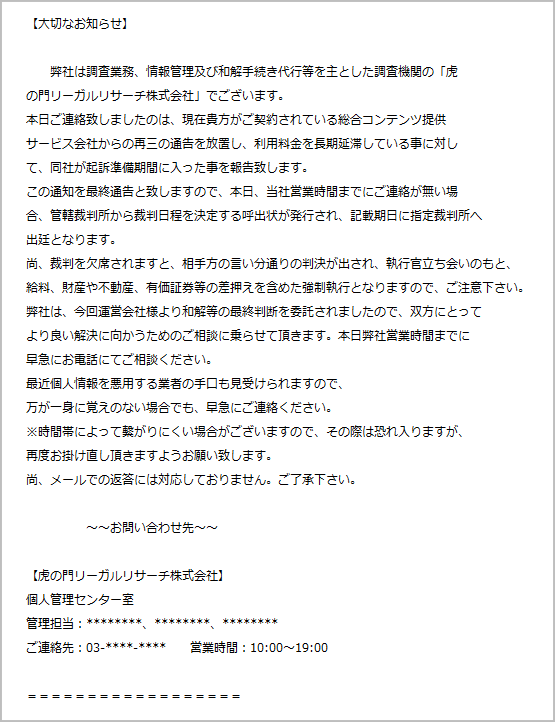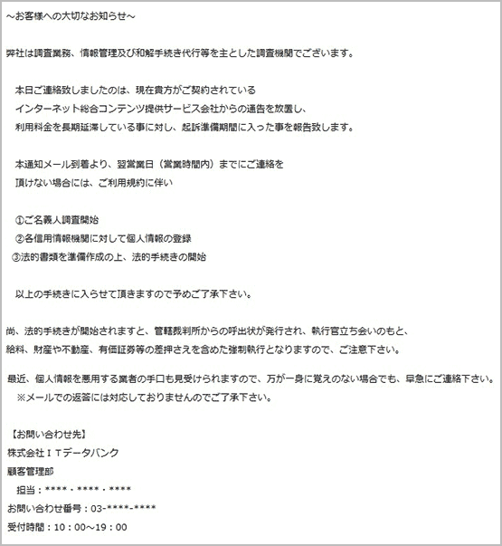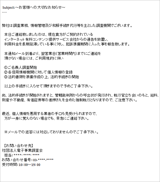 Webサイトに表示される事例も確認されております。合わせてご注意ください。