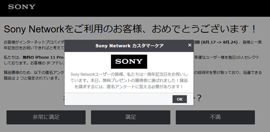 【重要】Sony Network を装った不審なキャンペーンにご注意ください
