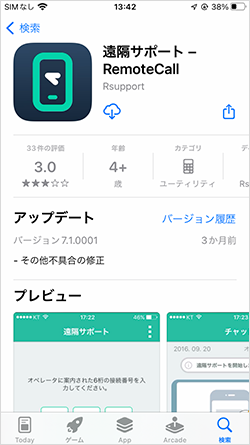 - 「リモートサポート」ボタンをタップすると「App Store」に自動で移動します。