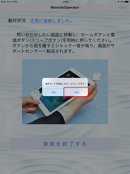 オペレーターからのご案内にしたがって、リモート接続を開始します。