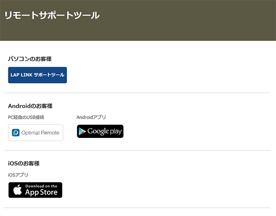その場合、お客さまのご希望をお伺いし、オペレーターから改めてお電話をさせていただきます。 - リモートサポートをご利用いただくには、サポート対象となるパソコン、タブレット、スマートフォンがインターネットに接続されている必要がございます。
