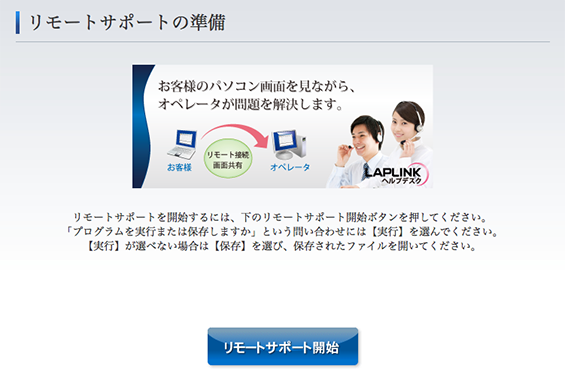 オペレーターからのご案内にしたがって、お客さまのパソコンにリモートサポートツールをダウンロードします。