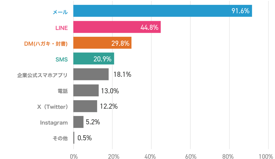 企業からの連絡ツールはメールを使用している方が圧倒的に多いですね。