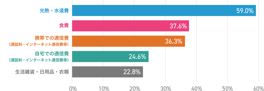 多くの方に回答いただき、ありがとうございました!1位は光熱費・水道費。私も頭を抱えています・・・