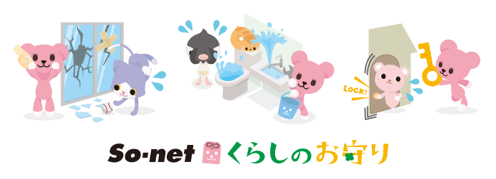 ご自宅内の水廻りや玄関鍵、窓ガラスのトラブル対応に。応急処置や超過作業の費用をSo-netがサポートいたします。