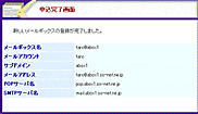 「申込完了画面」が表示されます。これでお申し込みは完了です。画面には作成されたA-Box名のほか、メールの送受信の際に必要なPOPサーバ名やSMTPサーバ名が表示されていますので、表示されている項目は、すべてメモを取っていただきますようお願いいたします。