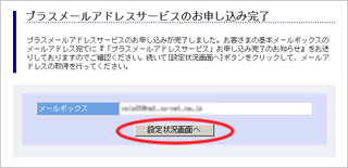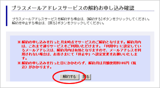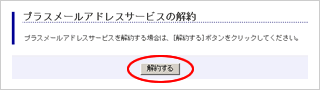 プラスメールアドレスサービスの設定状況が表示されます。[解約する]ボタンをクリックしてください。