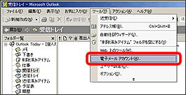 - Microsoft Outlook2002を起動後、プルダウンメニューの「ツール(T)」 から「電子メールアカウント(A)」を選択します。