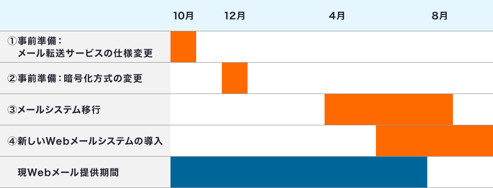 新しいWebメールシステムの詳細な導入日程に関しては、確定し次第、改めて本お知らせページにてご案内いたします。
