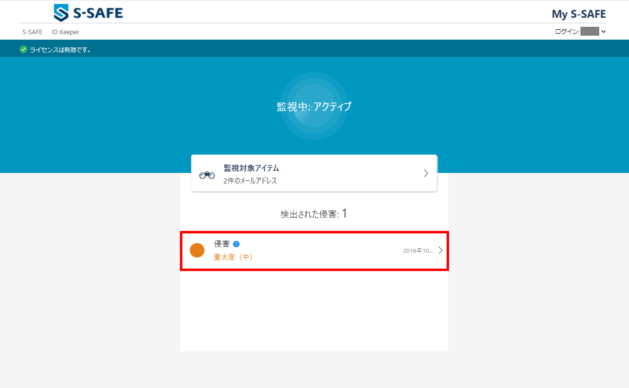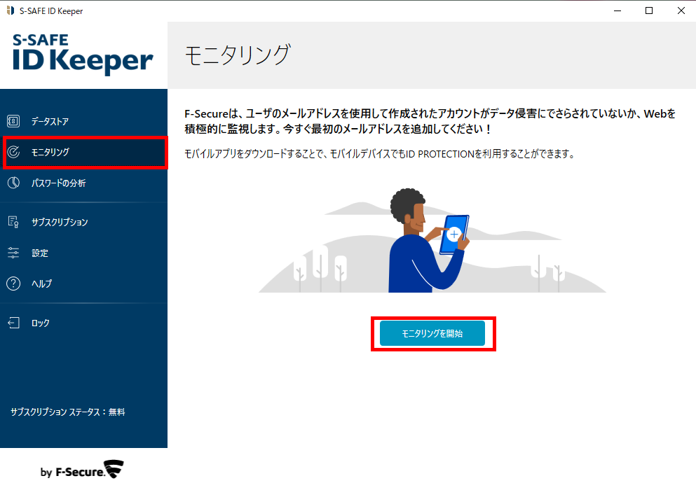 S-SAFE ID Keeperのメニューの「モニタリング」から、「モニタリング開始」をクリックしてください。