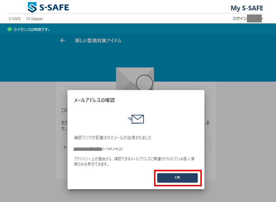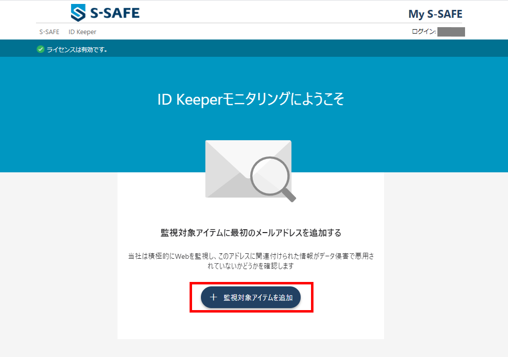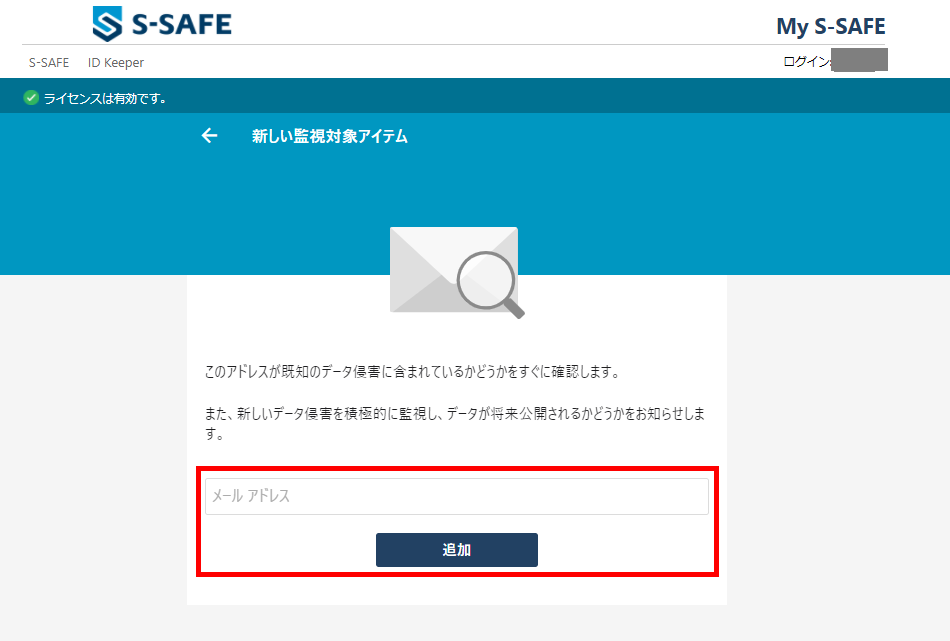 S-SAFE ID KeeperのWindows/Mac版では、My S-SAFEからモニタリング用のメールアドレスを追加できます。