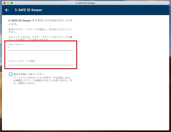 ソフトが起動するので、言語選択で「日本語」を選択し、「S-SAFE ID Keeperを使用し始める」をクリックしてください。