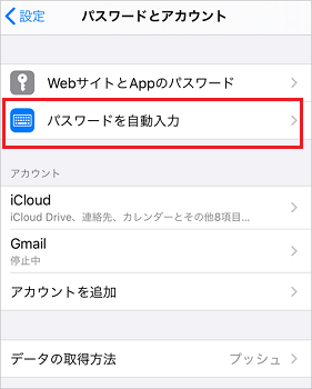 [パスワードとアカウント] で [パスワードを自動入力] を選択します。