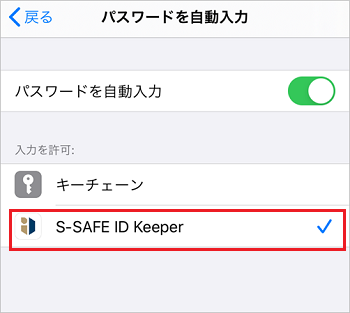 [入力を許可] の下で、 [S-SAFE ID Keeper] を選択します。