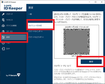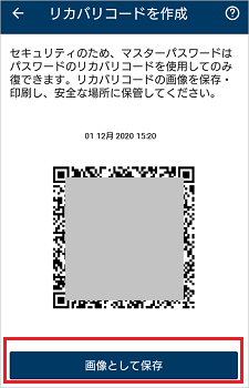 マスターパスワードのリカバリコードは、コードを画像として保存し、ファイルを印刷して保管することを推奨します。