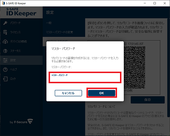 - マスターパスワードを入力し、[確定] を選択してリカバリコードを作成します。