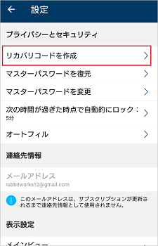 モバイルデバイスでマスターパスワードのリカバリコードを作成する