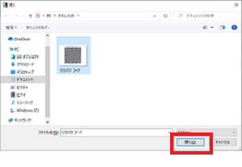 事前に作成したリカバリコードのイメージファイルを開きます。