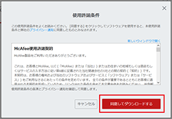 使用許諾契約の画面で[同意してダウンロードする]をクリックしてください。