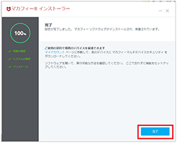 [完了]ボタンをクリックして、引き続きセットアップを行ってください。
