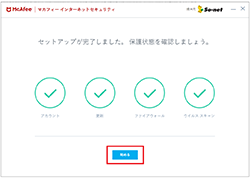 セットアップが完了したら、[始める]をクリックし保護状態を確認してください。