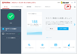 右上に数字マークが出る場合は、クリックして画面の案内にしたがってセキュリティソフトの更新を行ってください。