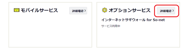 「オプションサービスサービス」欄の「インターネットサギウォール for So-net」の「契約・利用状況詳細」をクリック