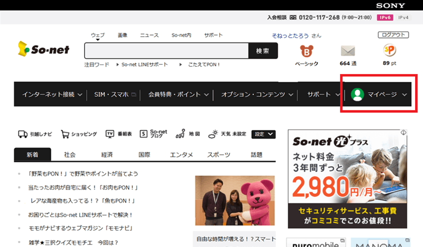 - So-net TOPからマイページ(https://www.so-net.ne.jp/mypage/)にアクセス