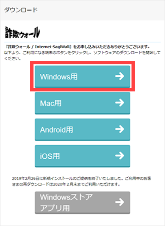 「ダウンロード」ページでインストールしたい端末のボタンをクリック