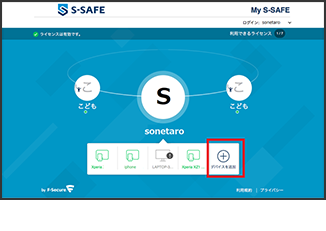 ログインが完了したら、画面下部中央に表示されている「デバイスを追加」をクリックしてください。