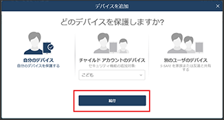 インストールしたい対象「自分」「子ども」「別のユーザー」から選択して「続行」をクリックしてください。