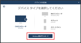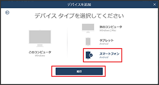 インストールしたいデバイスのタイプを選択し、「続行」をクリックしてください。