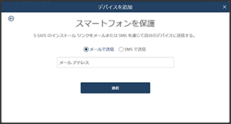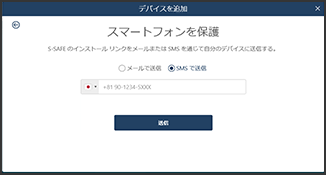 インストールリンクの送付先となるメールアドレスまたはSMS配信する電話番号を入力してください。入力後、「送信」をクリックしてください。