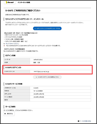 S-SAFE ログインIDは、利用状況確認ページで確認できます。
