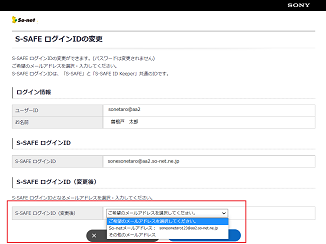[S-SAFE ログインIDの変更はこちら]をクリックしてください。