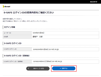 - S-SAFE ログインIDを変更した場合もパスワードは変更されません。パスワードの変更は[パスワードの確認・変更]ページで手順を確認しお手続きください。