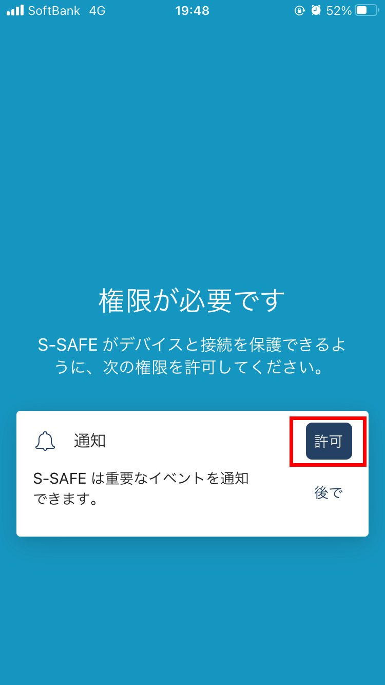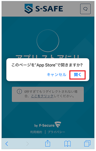 インストールが完了したら、「開く」をタップして、S-SAFEを起動してください。