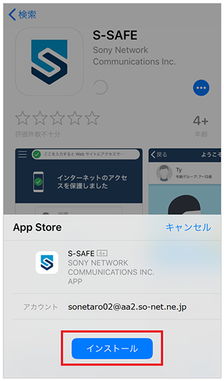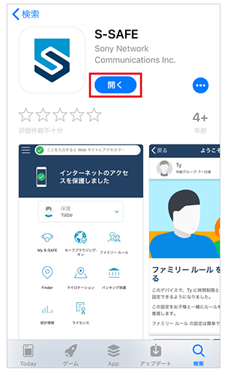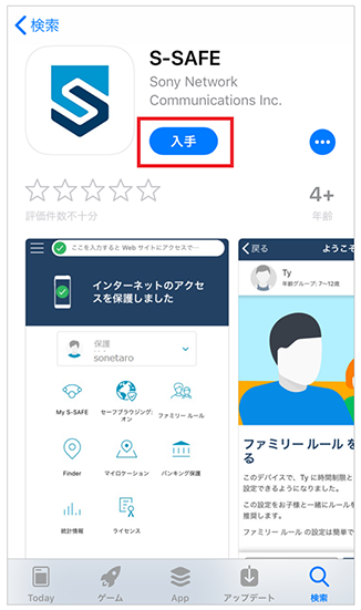 S-SAFEのAppStoreページが開いたら、「入手」をタップしてください。