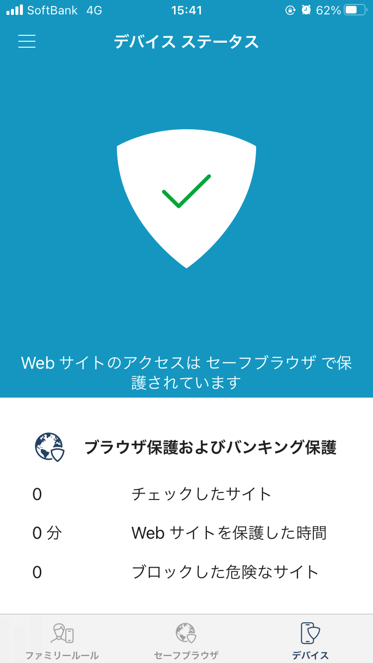 「Webサイトのアクセスはセーフブラウザで保護されています」の画面が表示されたらインストール完了です。