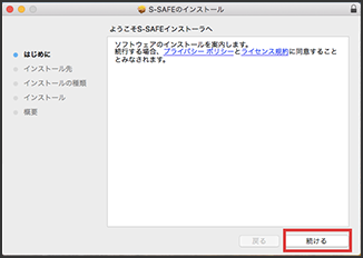 ダウンロードされたファイル「S-SAFE・・・.mpkg」をクリックし、開いてください。